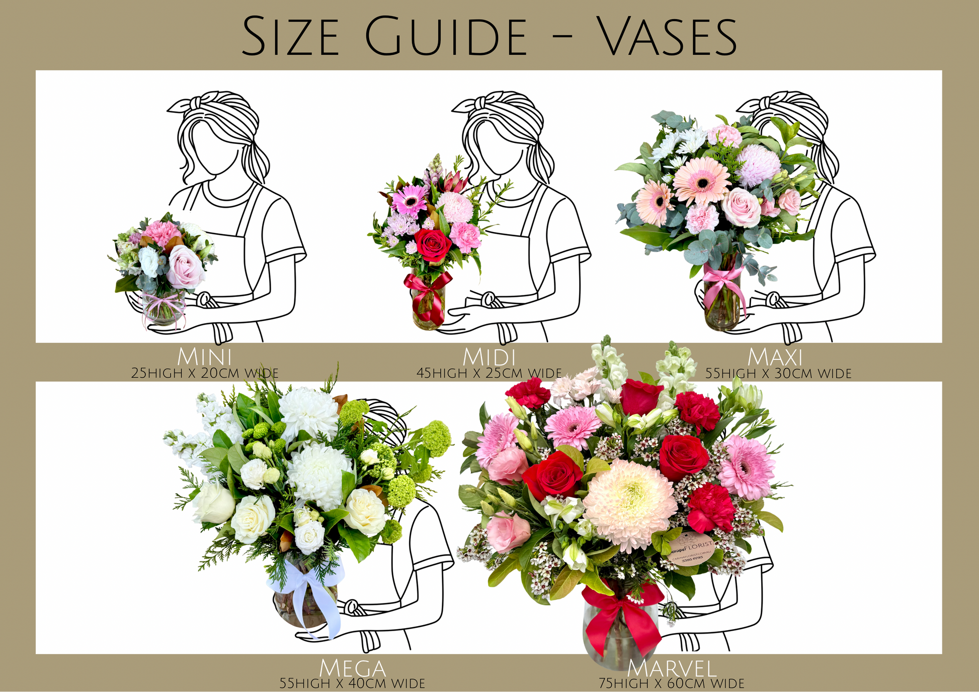 Please Note: flowers may vary based on availability. Marvel size must be ordered a minimum of 48hrs before delivery/pick up date.